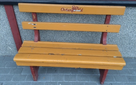Fem nye benker til sentrum er innkjøpt hos Rosenvik. De er malt i Orkanger Vels farger lik de gamle benkene, men har en helt annen utforming og er mer solide.